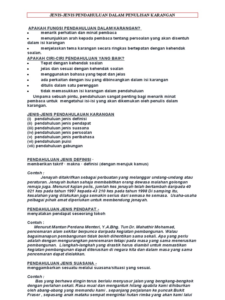 Jenis Pendahuluan Dalam Karangan