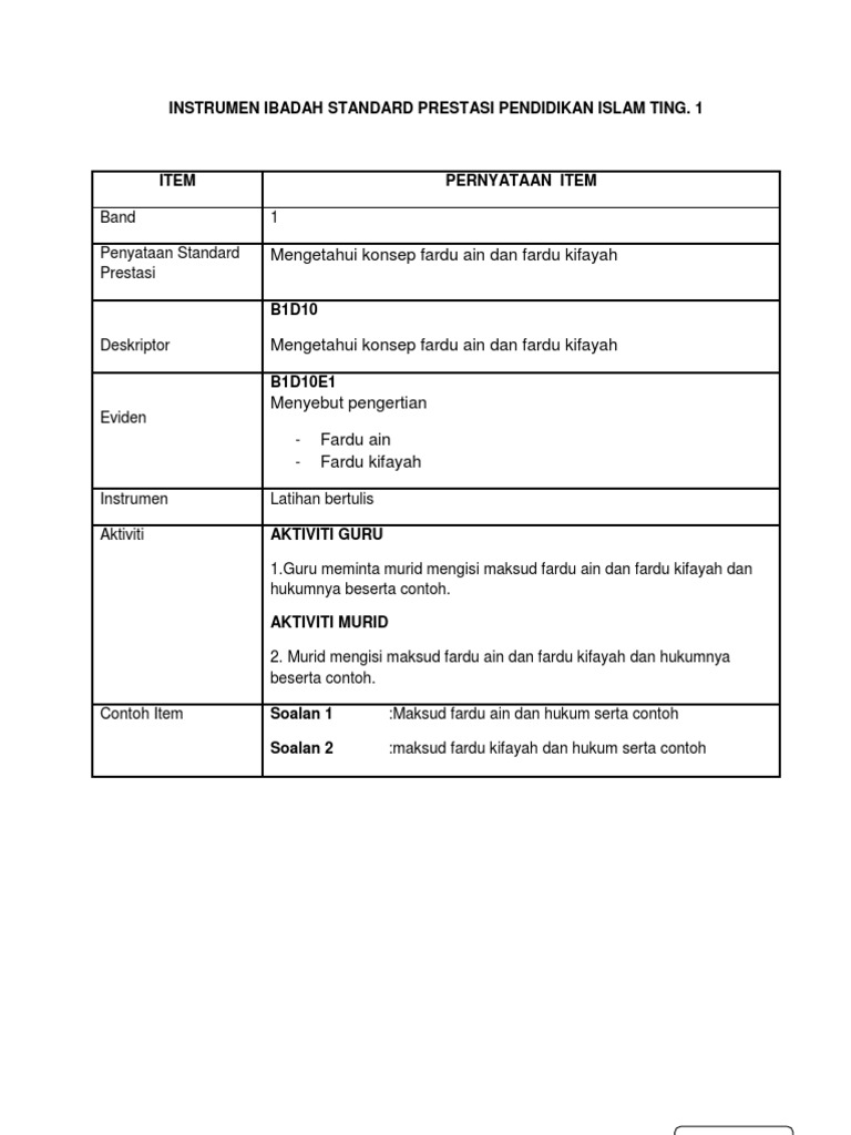 Dokumen Standard Prestasi Pendidikan Islam Ting 1