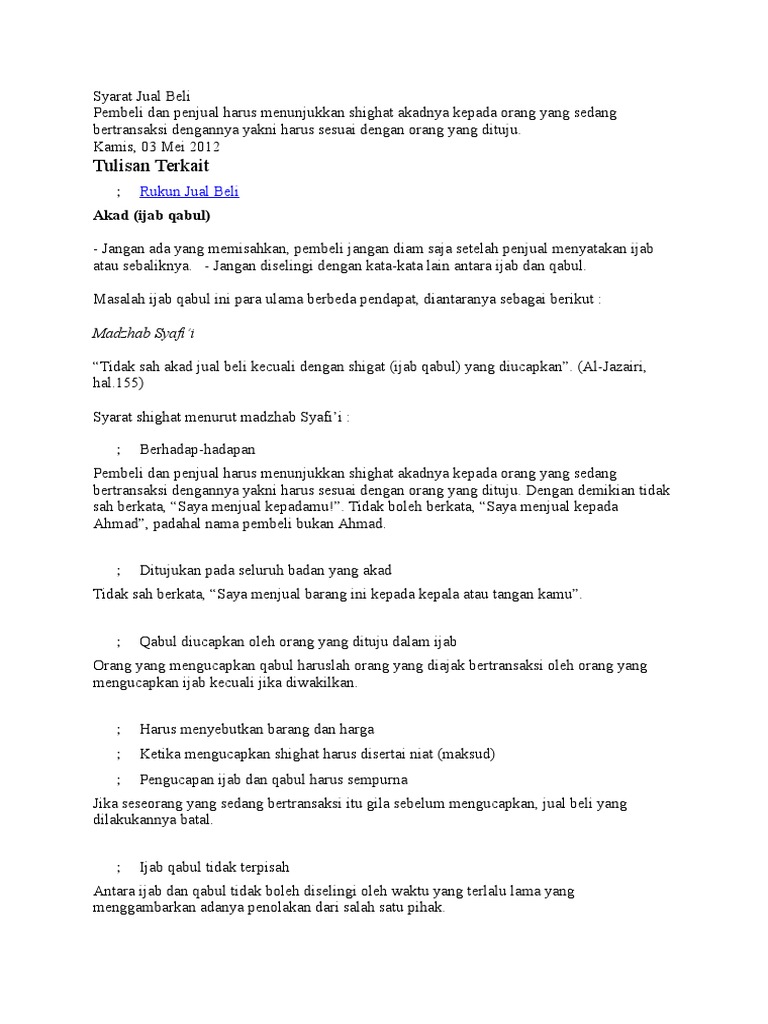 Syarat Jual Beli