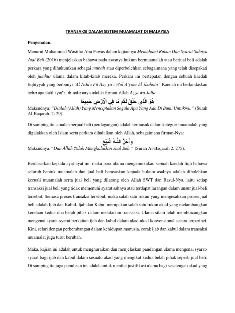 Transaksi Dalam Sistem Muamalat Di Malaysia Docx