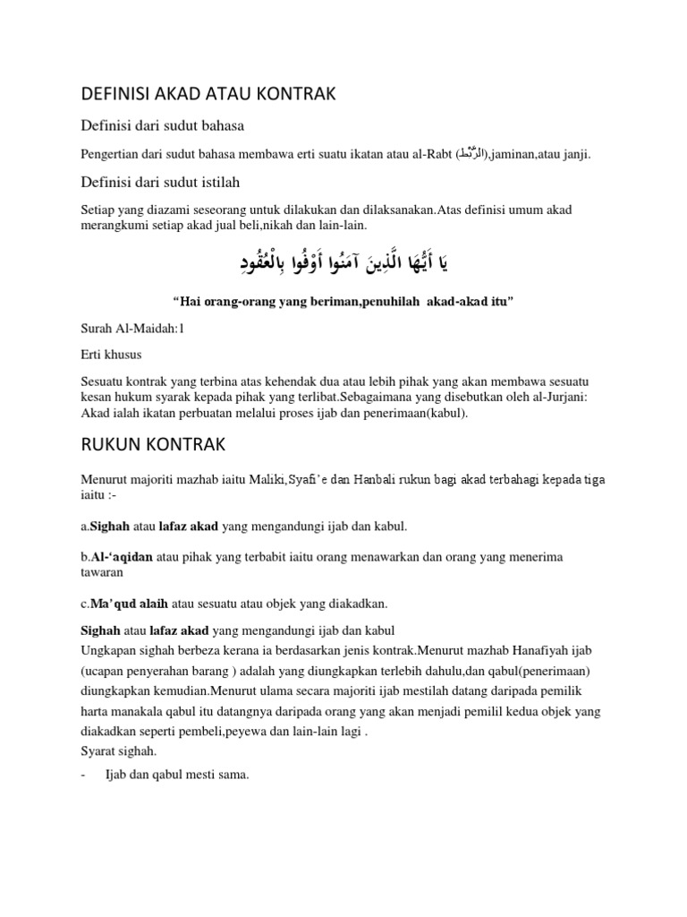 Definisi Akad Atau Kontrak