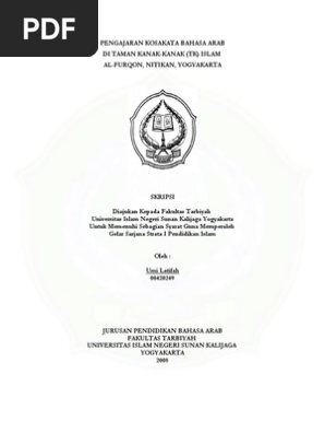 Pengajaran Kosakata Bahasa Arabdi Taman Kanak Kanak Tk Islam Al Furqon Nitikan Yogyakarta