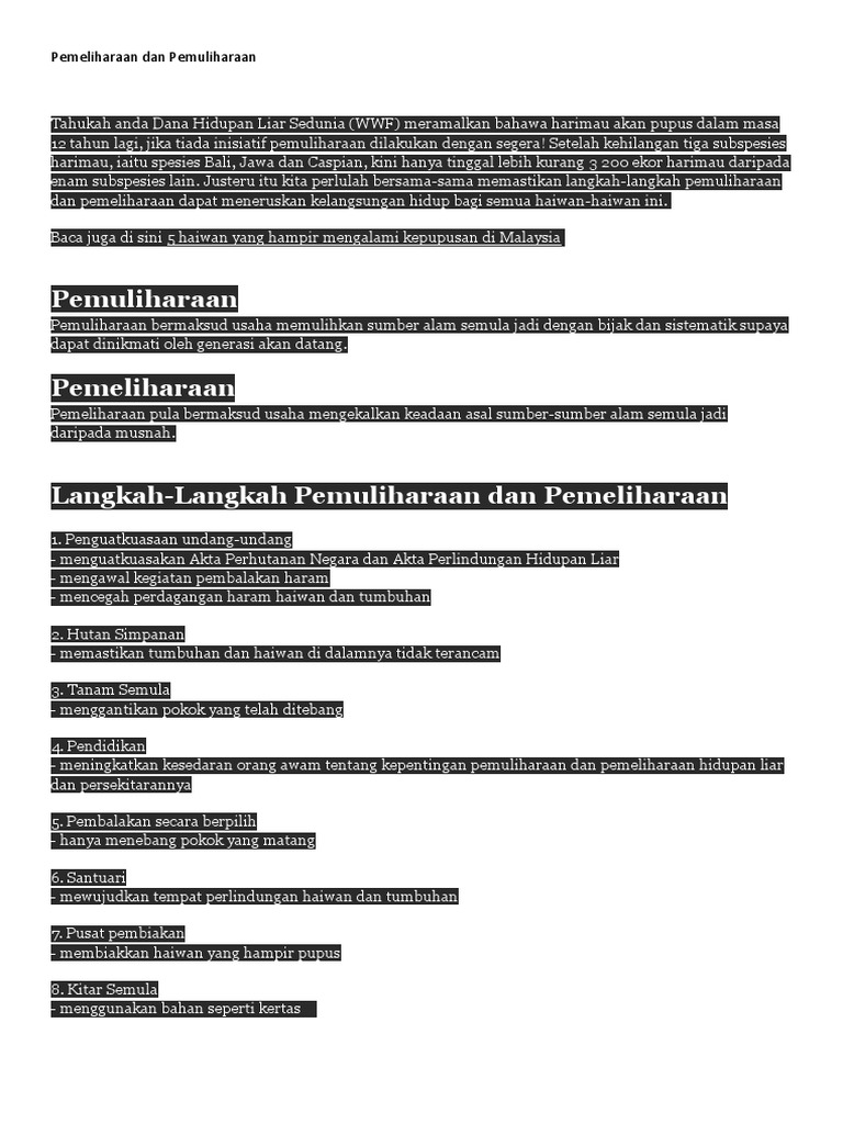 Maksud Pemeliharaan Dan Pemuliharaan Haiwan Dan Tumbuhan