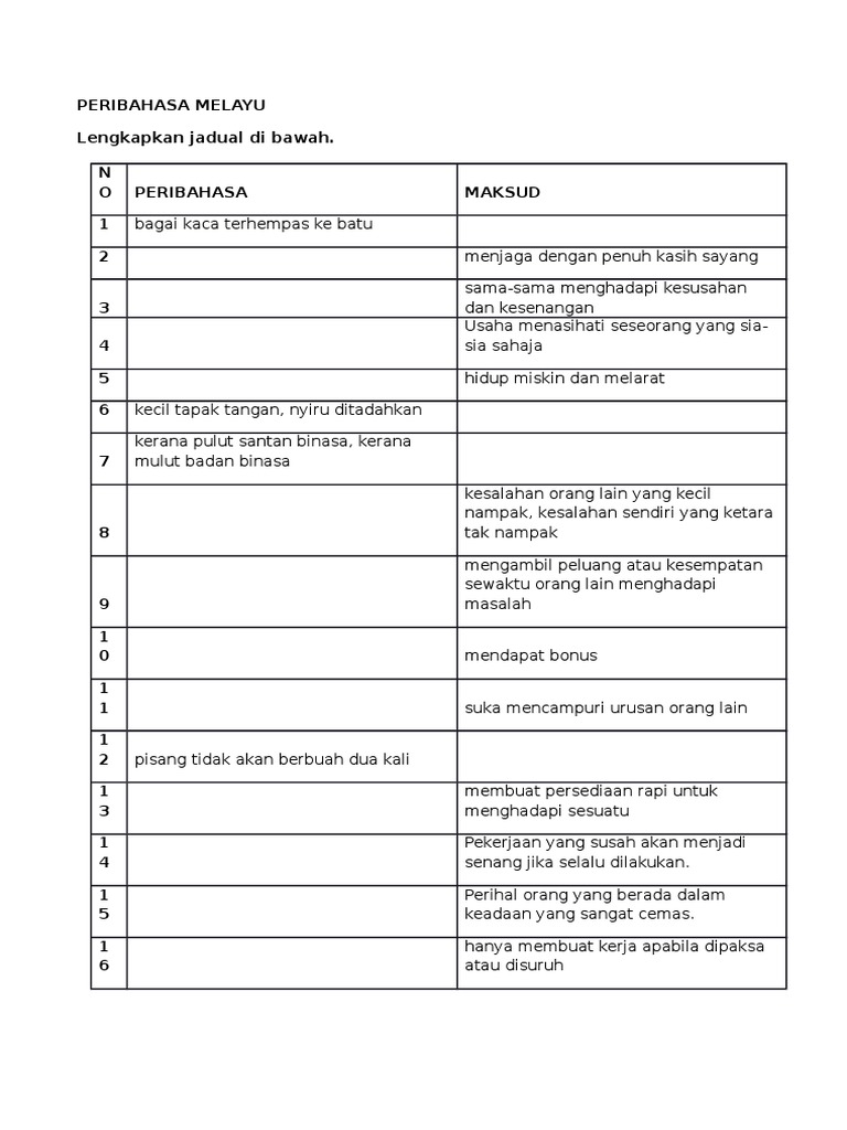 Peribahasa Spm Senarai Peribahasa Untuk Pelajar Sekolah Menengah Tingkatan 1 1 Tempat Jatuh Lagi Dikenang Inikan Pula Tempat Bermain Tempat Berlakunya Course Hero