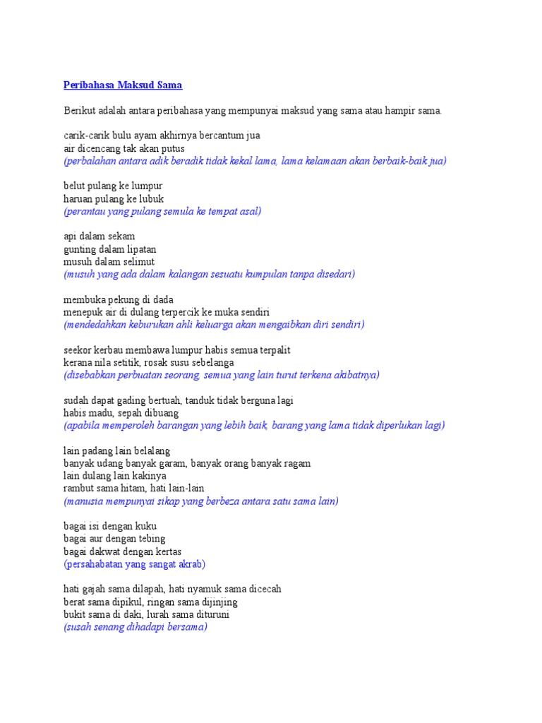 Berikut Adalah Antara Peribahasa Yang Mempunyai Maksud Yang Sama Atau Hampir Sama