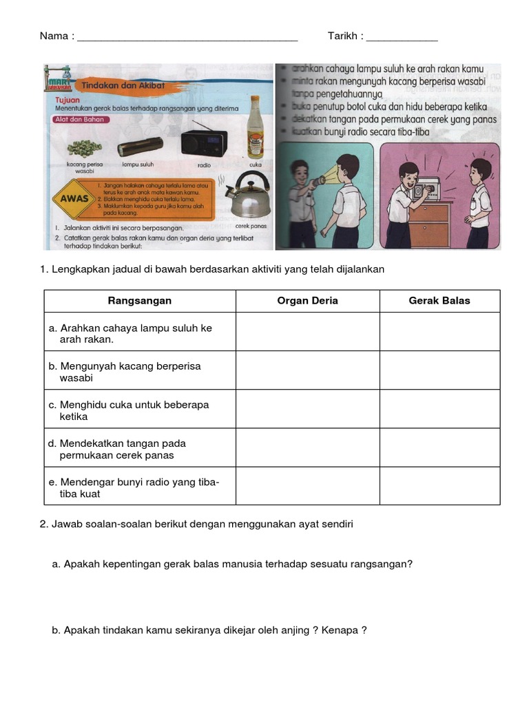 Gerak Balas Rangsangan Tahun 4 Pdf Document