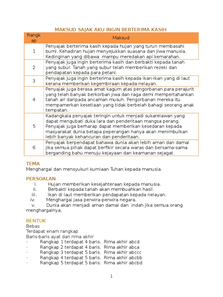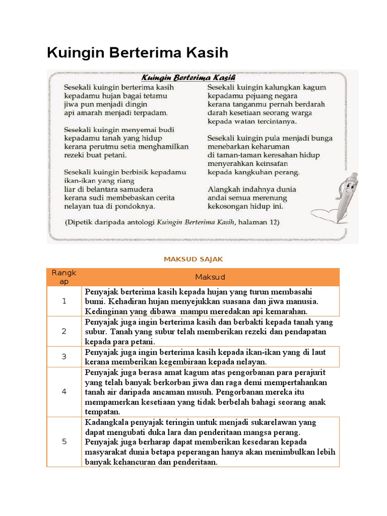 Sajak Kuingin Berterima Kasih Pdf Sajak Kuingin Berterima Kasih Maksud Sajak Rangkap 1 Penyajak Berterima Kasih Kepada Hujan Yang Turun Membasahi Bumi Course Hero