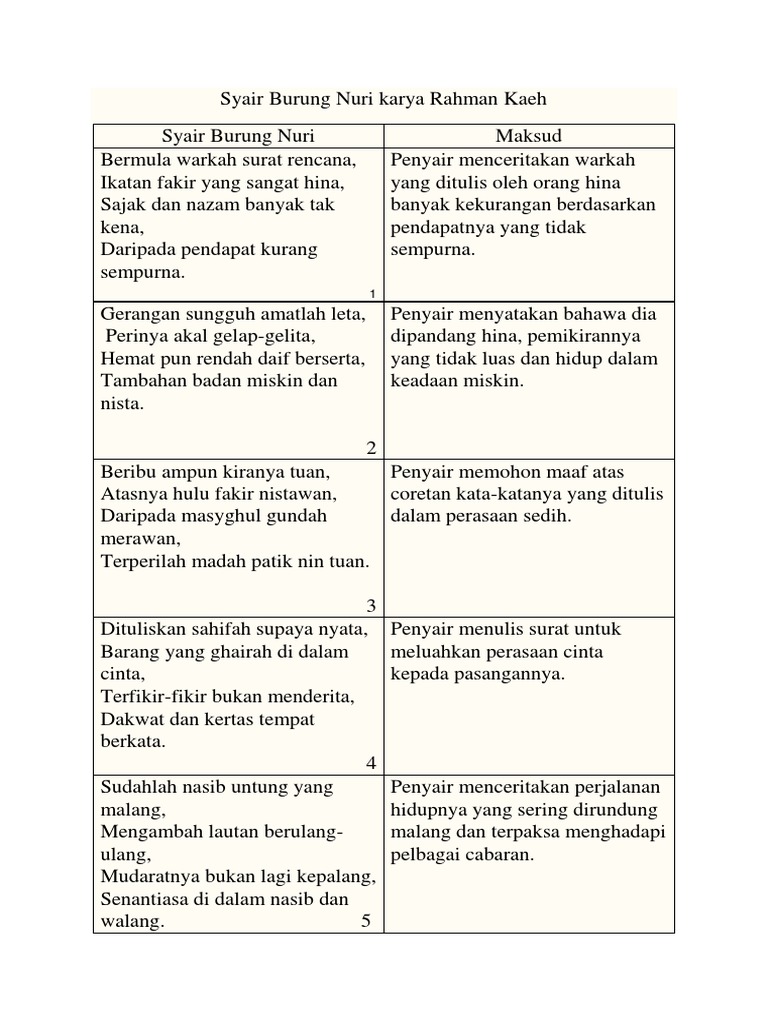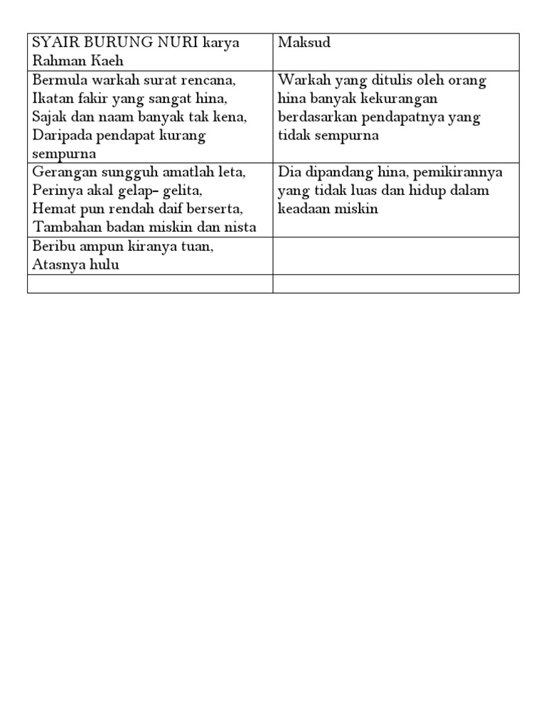 Syair Burung Nuri Karya Rahman Kaeh Docx
