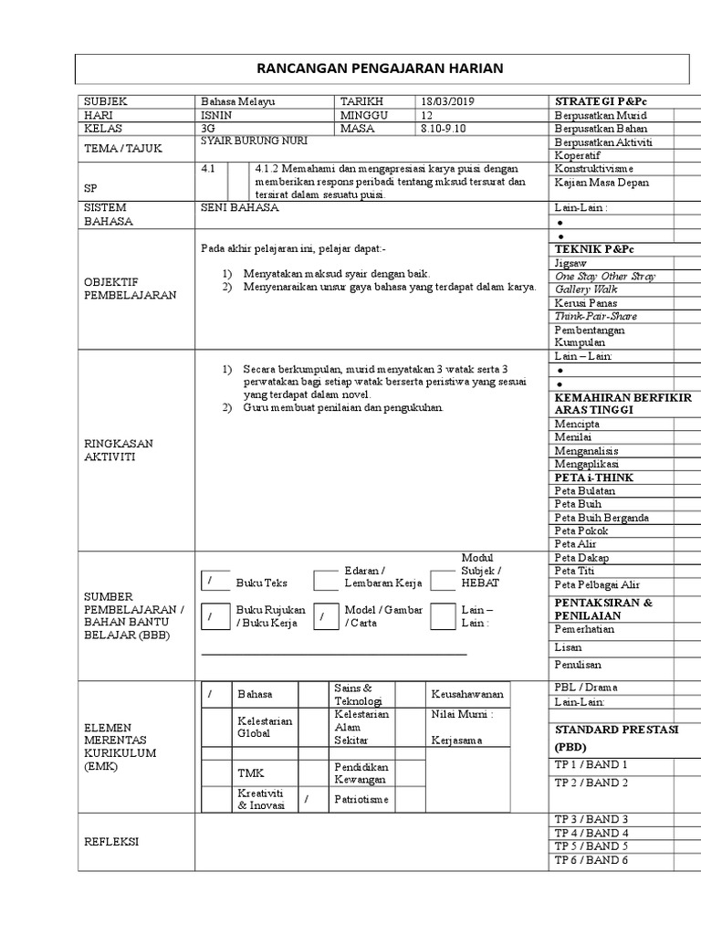 Rancangan Pengajaran Harian Syair Burung Nuri