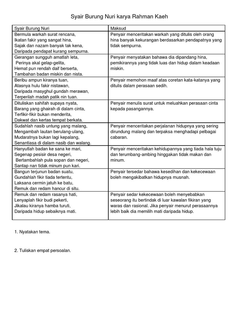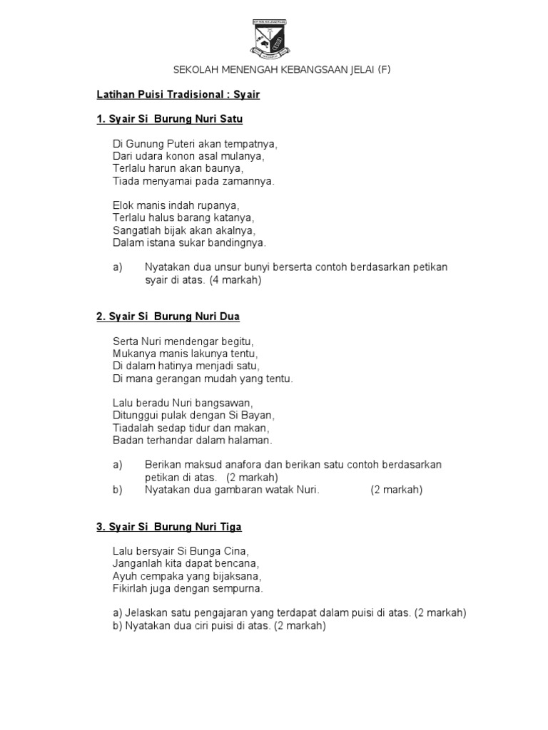 Contoh Soalan Dan Jawapan Syair Burung Nuri Persoalan S
