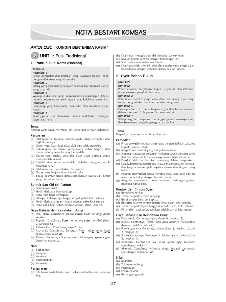 Nota Bestari Komsas Tema Amalan Yang Baik Dalam Kehidupan Persoalan A Kebaikan Diri Yang Sanggup Pdf Document