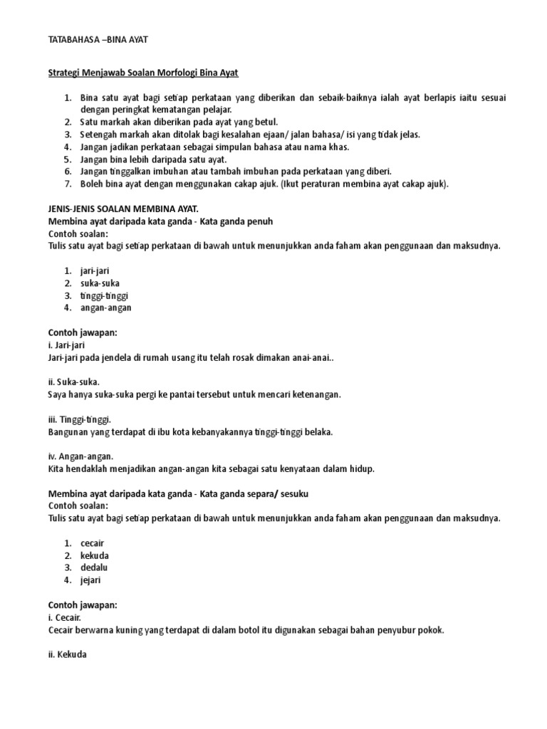 Koleksi Soalan Bina Ayat Spm 1981 2008