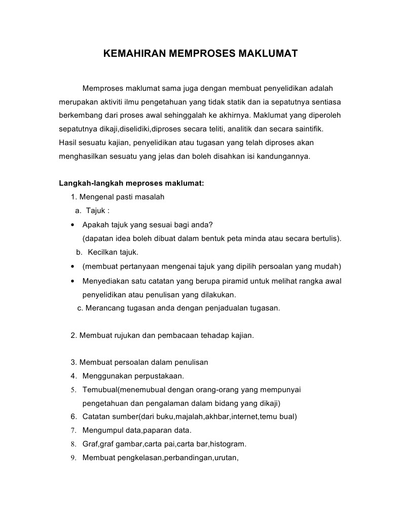 Kemahiran Memproses Maklumat Langkah Langkah Meproses Maklumat