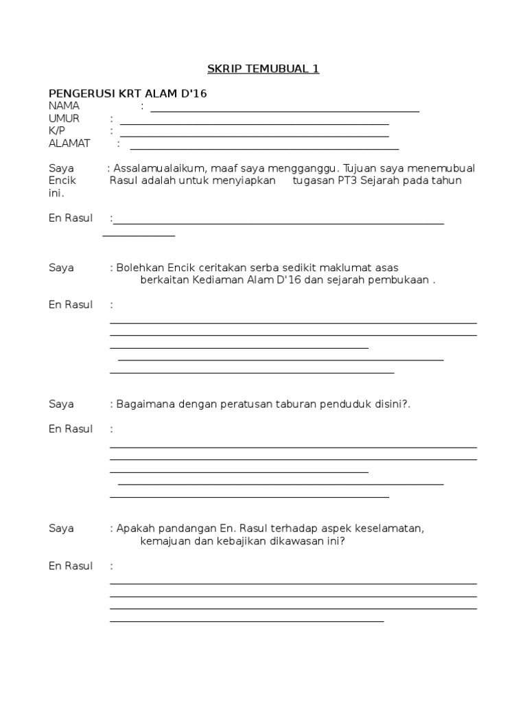Contoh Skrip Temu Bual Kerja Kursus Sejarah