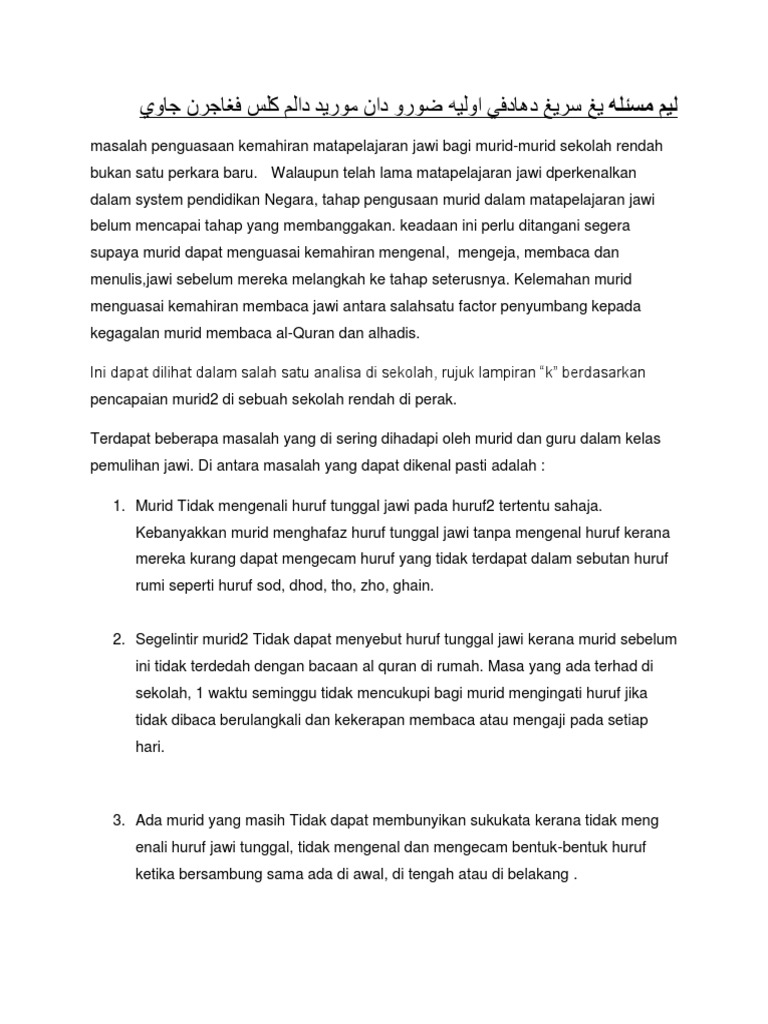 Kajian Tindakan Pelajaran Jawi Docx Kajian Tindakan U2013 Kra 3013 Meningkatkan Penguasaan Kemahiran Membaca Dan Menjawikan Perkataan Rumi Murid Tahun 2 Course Hero