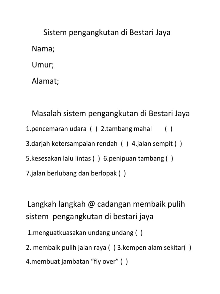 Sistem Pengangkutan Di Bestari Jaya Nama Umur Alamat