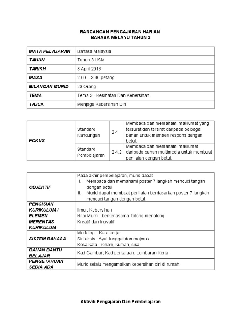 Rph Bm Tahun 3 Minggu 8 2017 Kesihatan Dan Kebersihan Autosaved