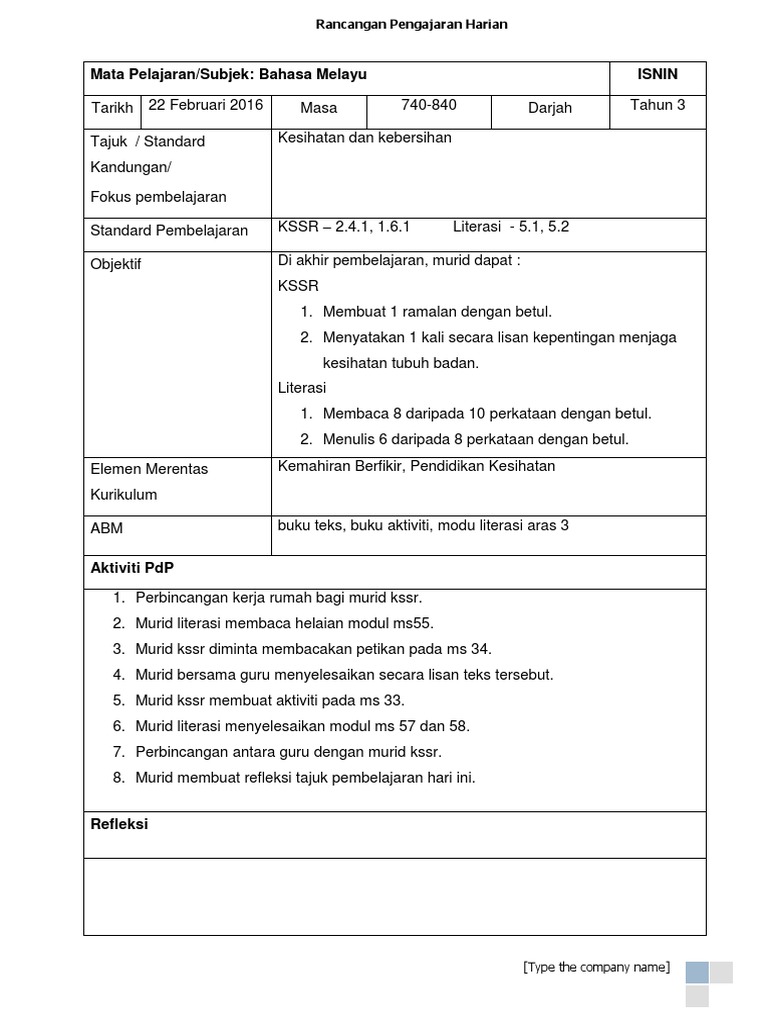 Contoh Lembaran Kerja Bm Kssr Tahun 3