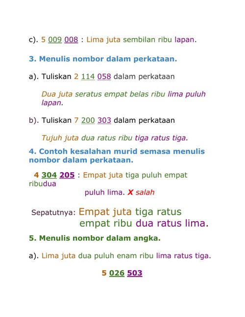 1 Menulis Nombor Dalam Angka Dan Perkataan Pdf Document
