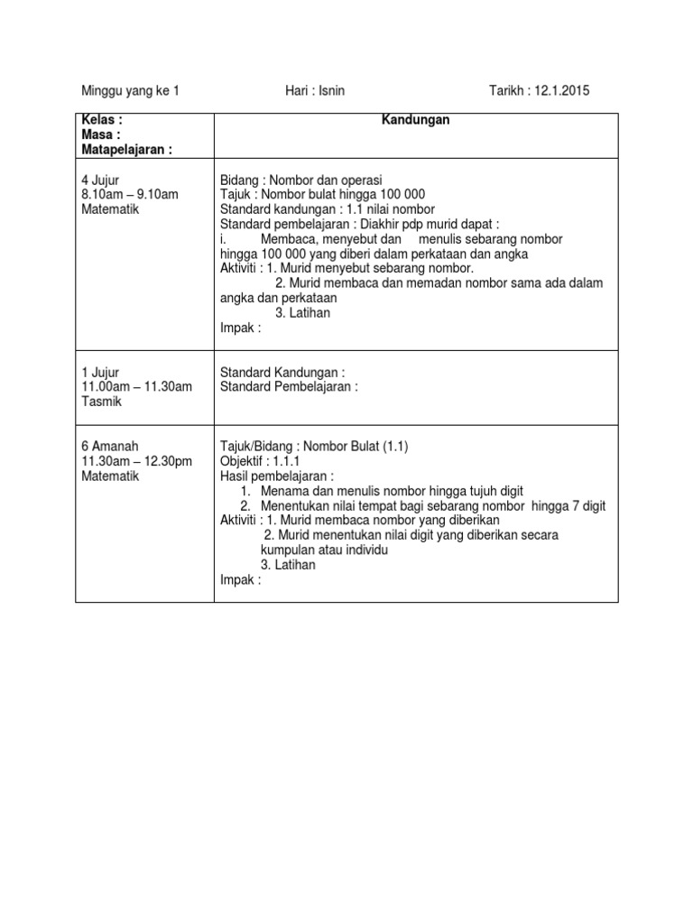 Modul Kssr Matematik Tahun 1 Versi B Malaysia