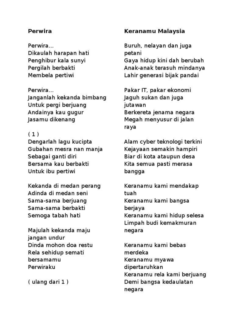 Merahmu bara lirik lagu patriotik sehati sejiwa. Merahmu bara semangat waja putihmu bersih budi pekerti kuning berdaulat payung negara biru perpaduan kami semua. Tahun 2015 lagu malaysia sehati sejiwa yang dinyanyikan oleh alif satar dipilih sebagai lagu tema merdeka 2015. Demi tanah yang bertuah taman cinta merdeka kasih di hatiku ini untukmu tanah pertiwi. Ku dengar janjimubayu kinabaluku dengar sumpahmurejang yang membirubersatu dengankutegap titiwangsamalaysia sehati sejiwa.