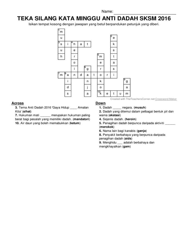 Jwpn Teka Silang Kata Minggu Anti Dadah Sksm 2016