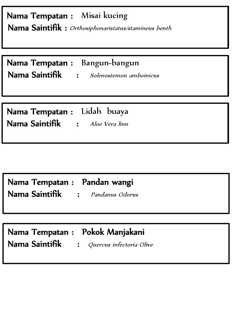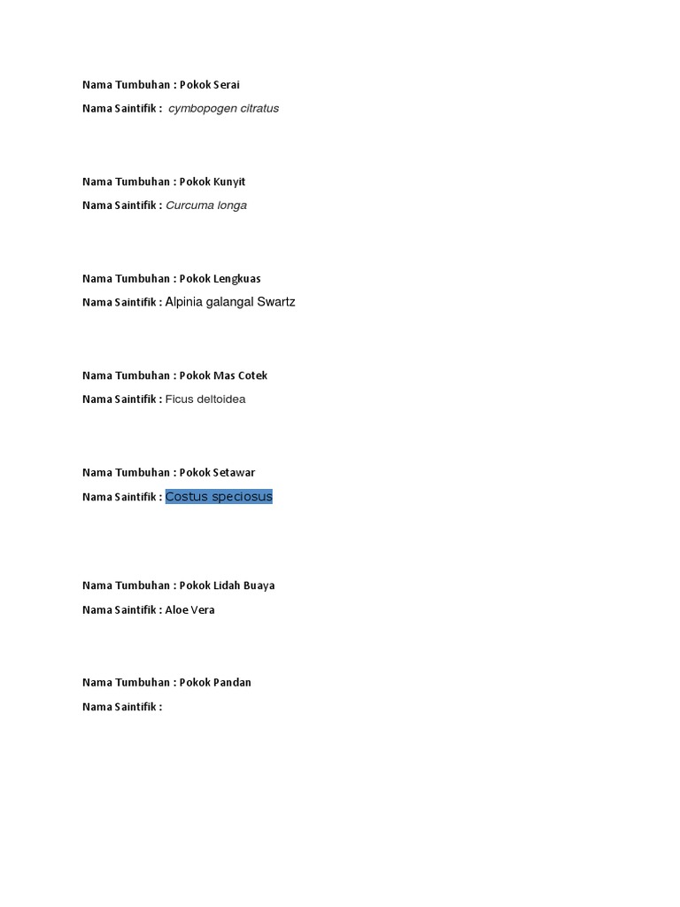 Nama Saintifik Tumbuhan Herba