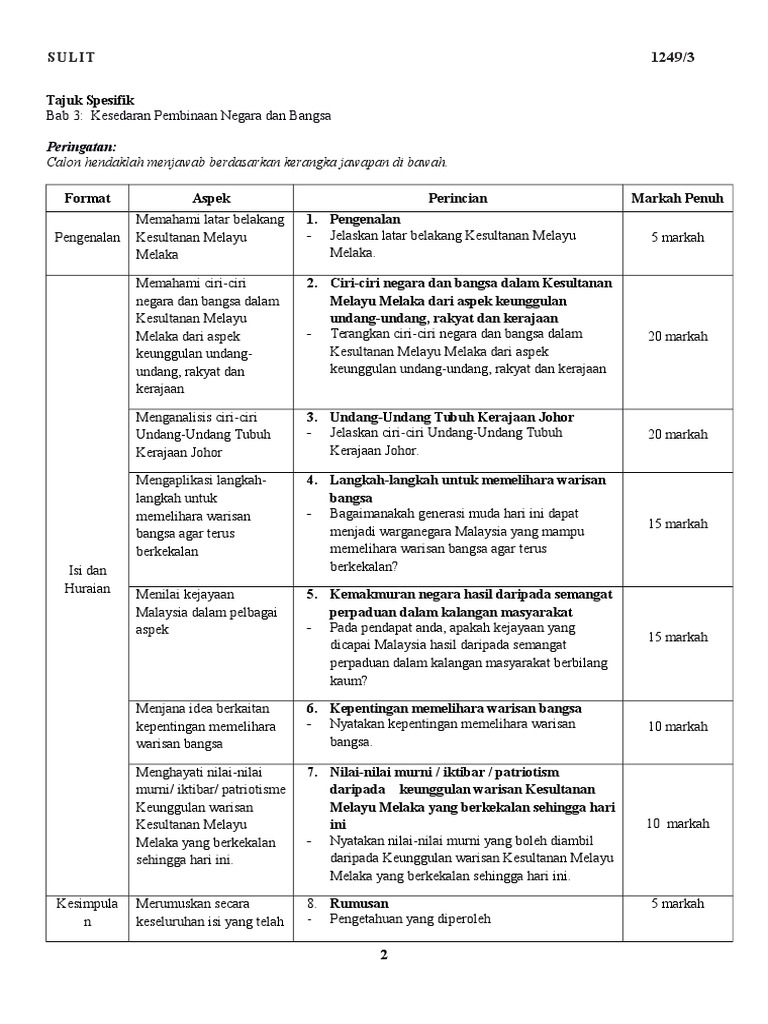 Skema Jawapan Sejarah Kertas 3 Kesedaran Pembinaan Bangsa Dan Negara