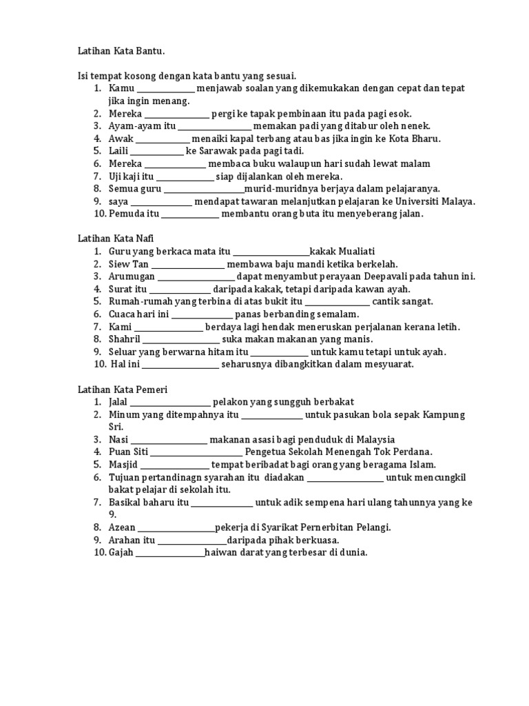 Latihan Kata Bantu
