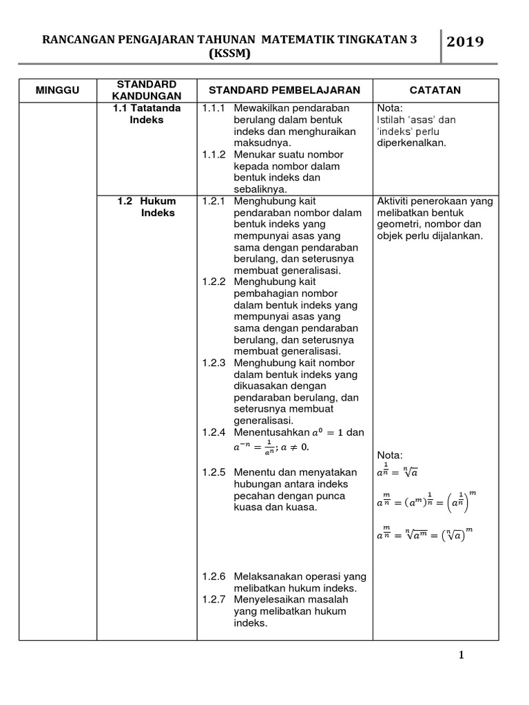 Nota Nota Matematik Tingkatan 3 Dalam Bahasa Melayu Bumi Gemilang