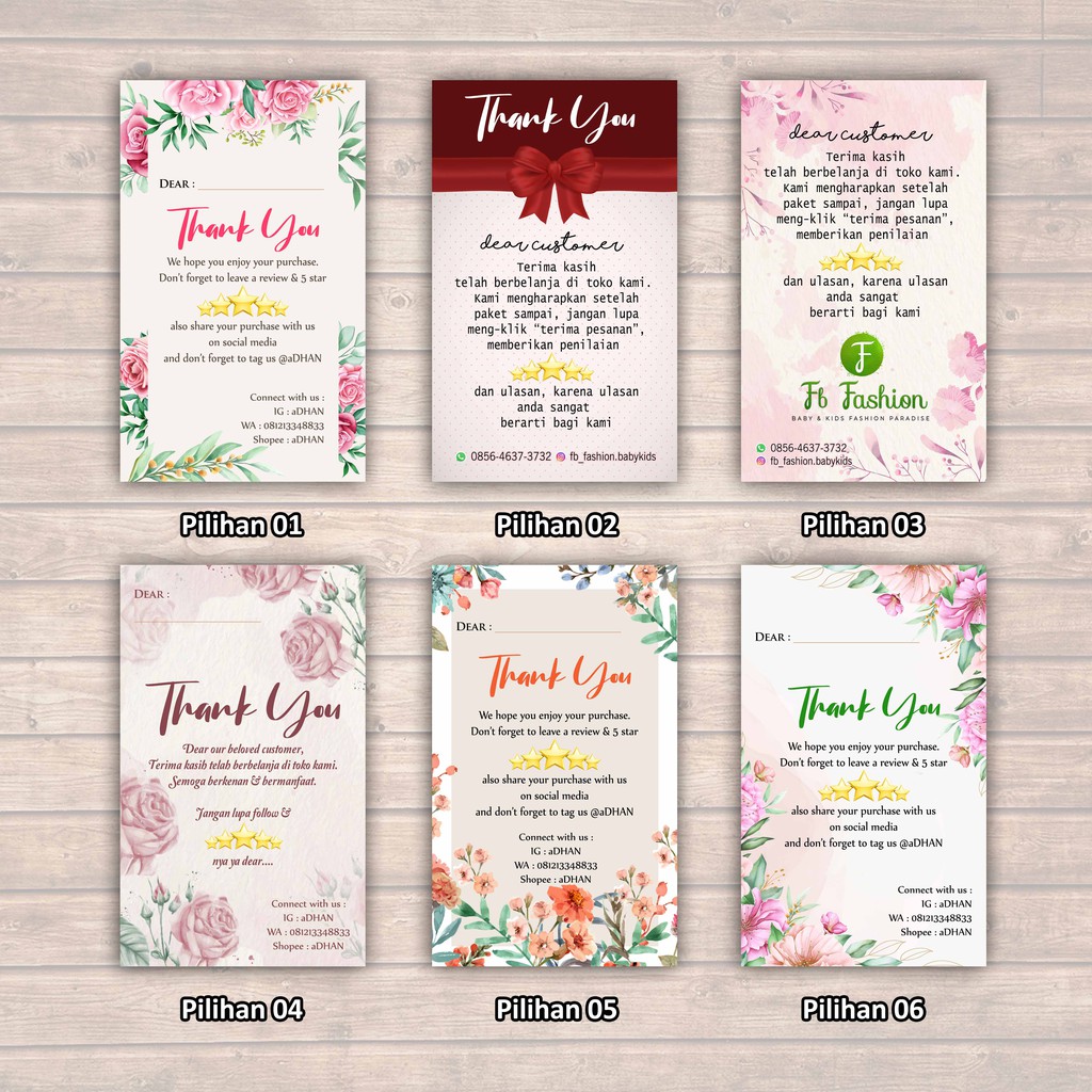Kartu Ucapan Terima Kasih Online Shop Thank You Card Olshop Stiker Olshop Custom Kartu Olshop Shopee Indonesia