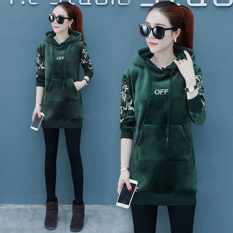 Baru Autumn Dan Musim Sejuk Ditambah Sut Velvet Korea Kasual Sukan Wanita Jaket Bertudung Gemuk Mm Warna Pepejal Sweater Zip Dua Set Shopee Malaysia