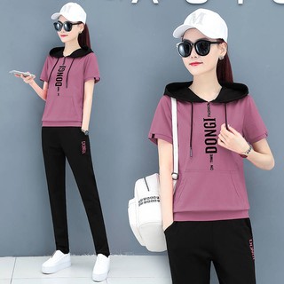 Perempuan Hoodie Seluar Lengan Pendek Kapas Murni Sweater Musim Panas Wanita Fesyen Dua Helai Seluar Kasual Pakaian Sukan 2020 Baru Korea Bertudung Shopee Malaysia
