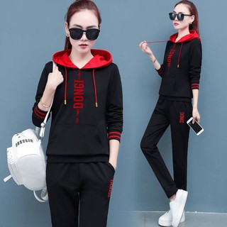 Perempuan Hoodie 2020 Pakaian Sukan Musim Bunga Baru Wanita Bersaiz Bordir Sweater Bertudung Kasual Longgar Yang Menjalankan Sut Dua Helai Shopee Malaysia