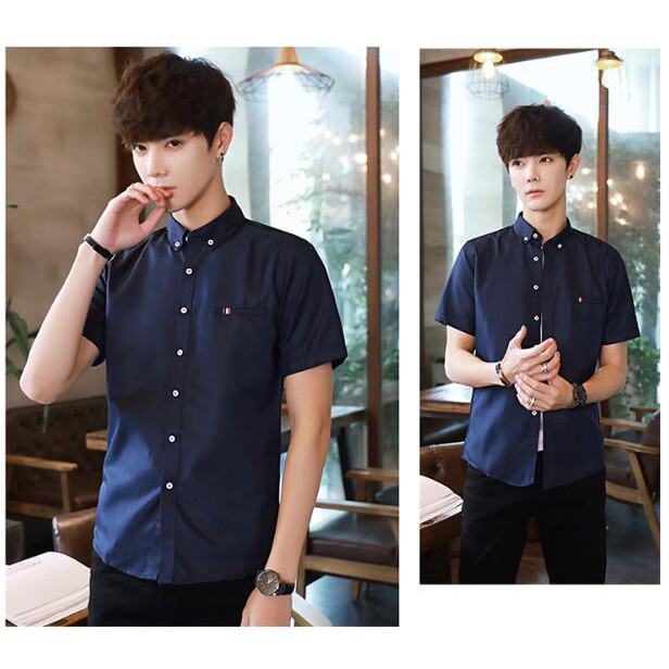 Short Sleeve Men Shirt Kemeja Lelaki Korean Business Slim Baju Plain Casual Shirts College Student Shirt T86 Shopee Malaysia