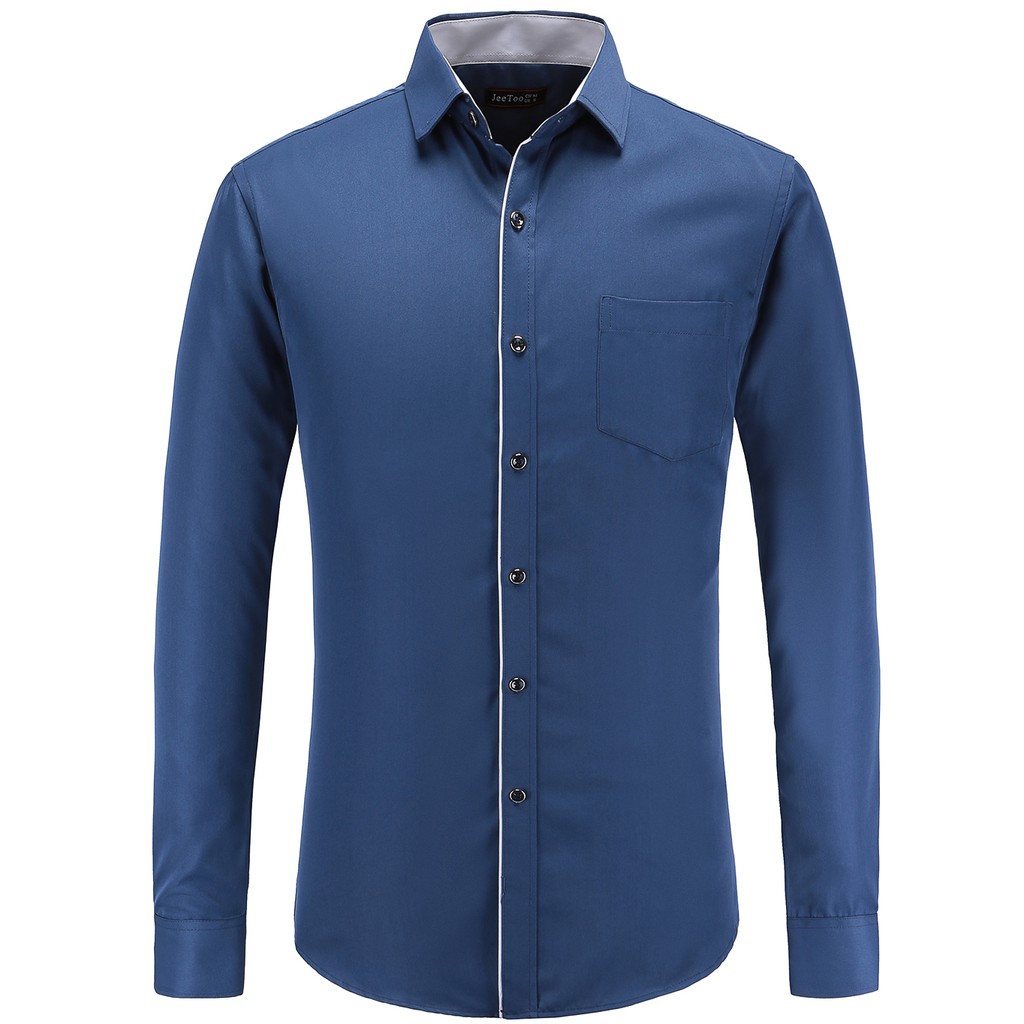 Mens Cotton Shirts Plain Long Sleeve Baju Kemeja Lelaki Casual Blouse Slim Fit Business Shirt Shopee Malaysia