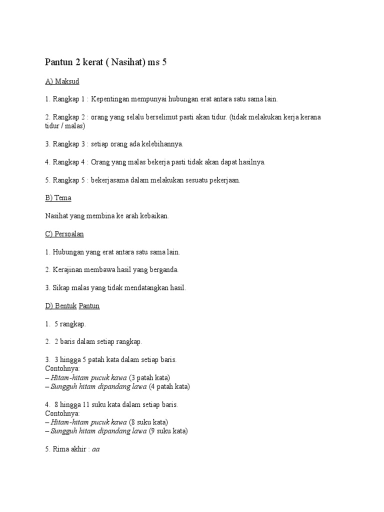 Pantun 4 Kerat Nasihat Pdf Document