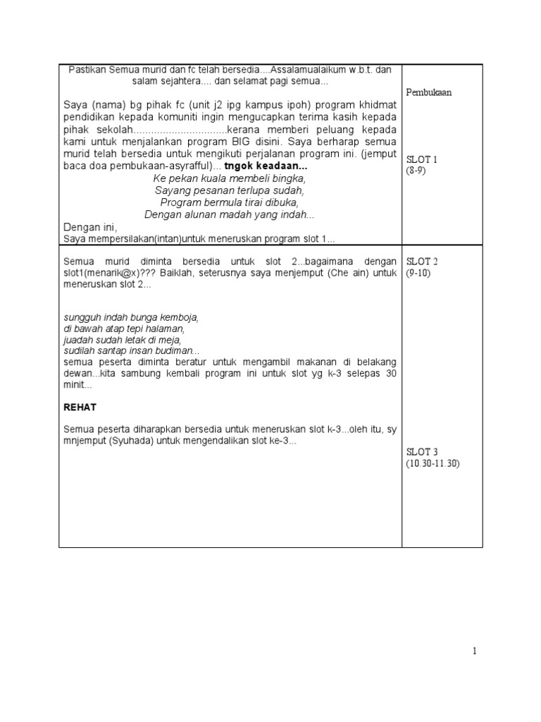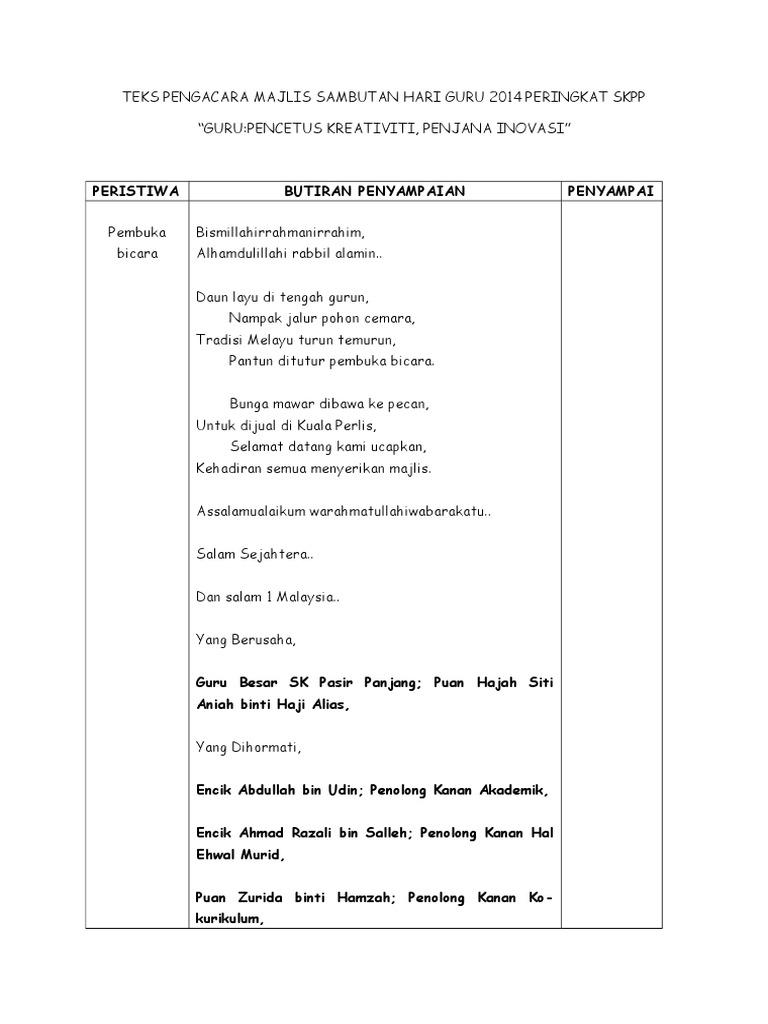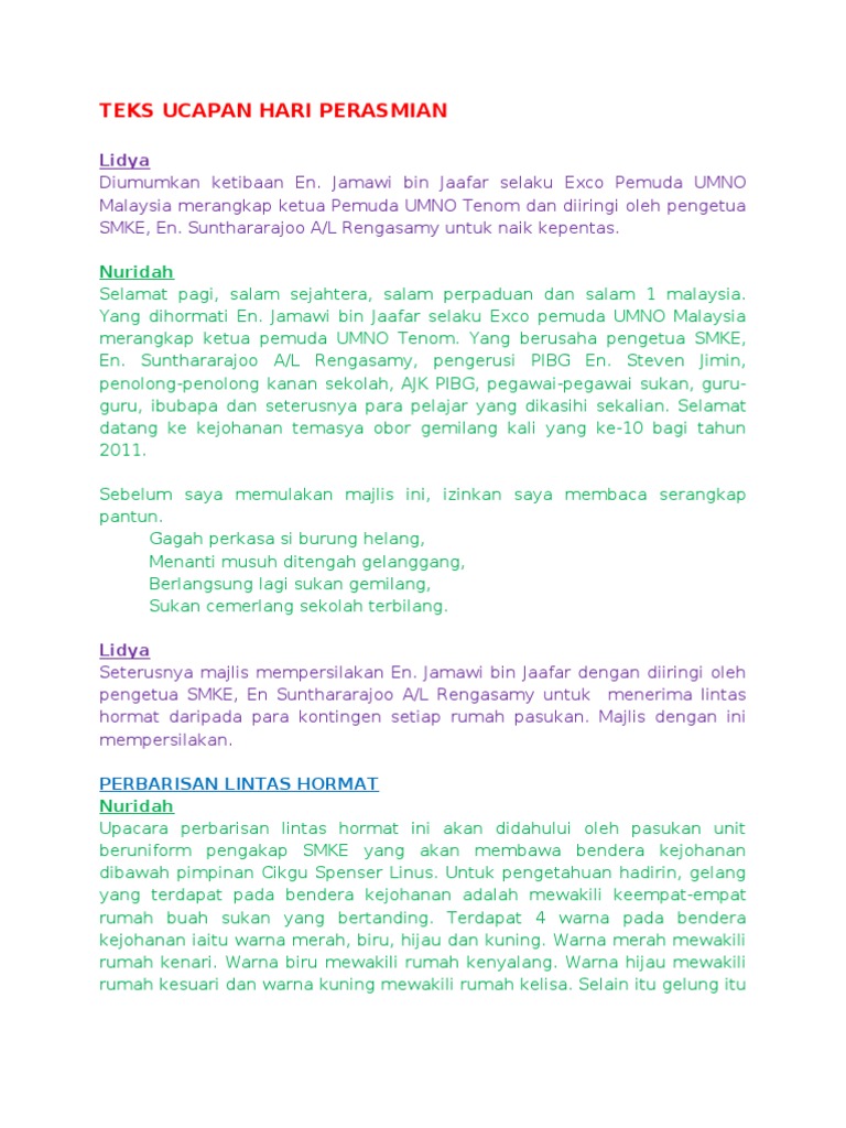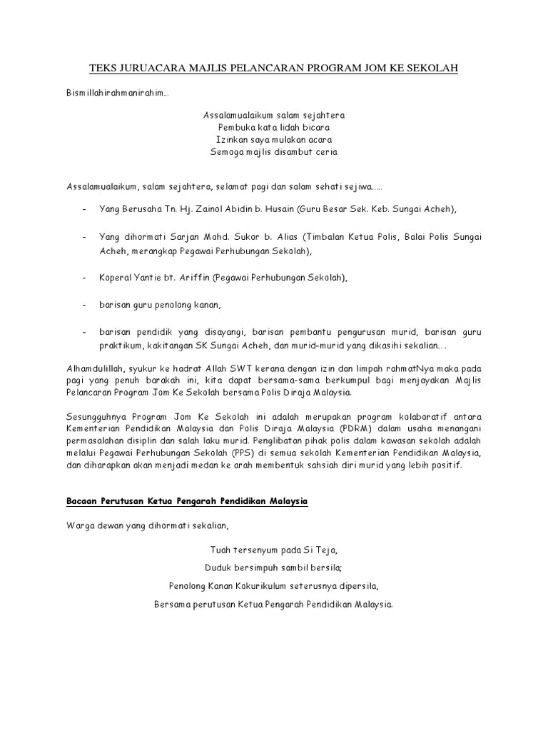 Teks Ucapan Pengacara Majlis Pendaftaran Tingkatan 1 Docx