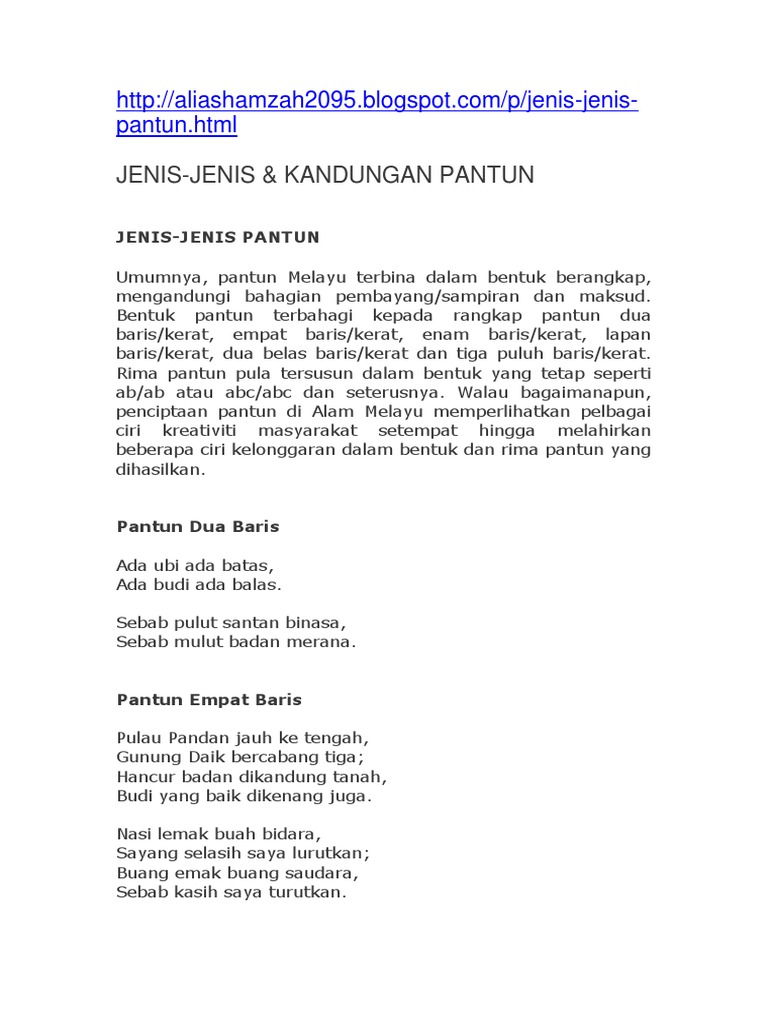Jenis Jenis Kandungan Pantun