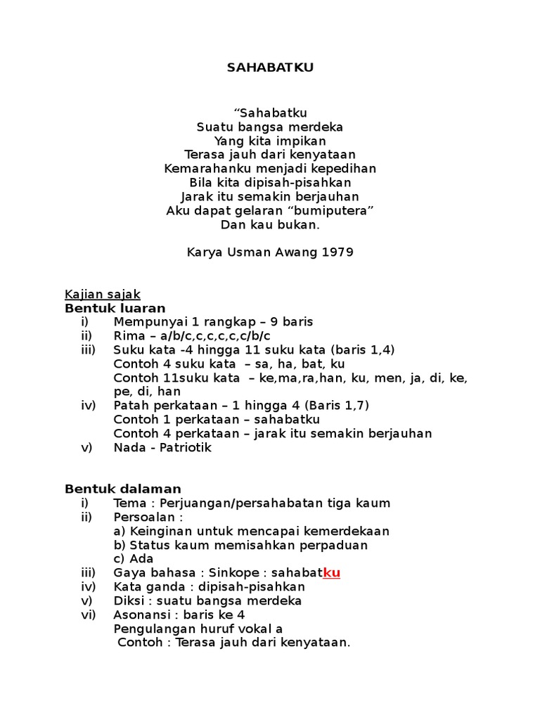 Doc Sejarah Dan Perkembangan Sajak Docx Linda Rajun Academia Edu