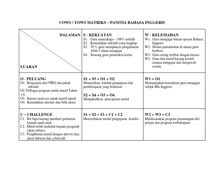 Cows Tows Matriks Panitia Bahasa Inggeris