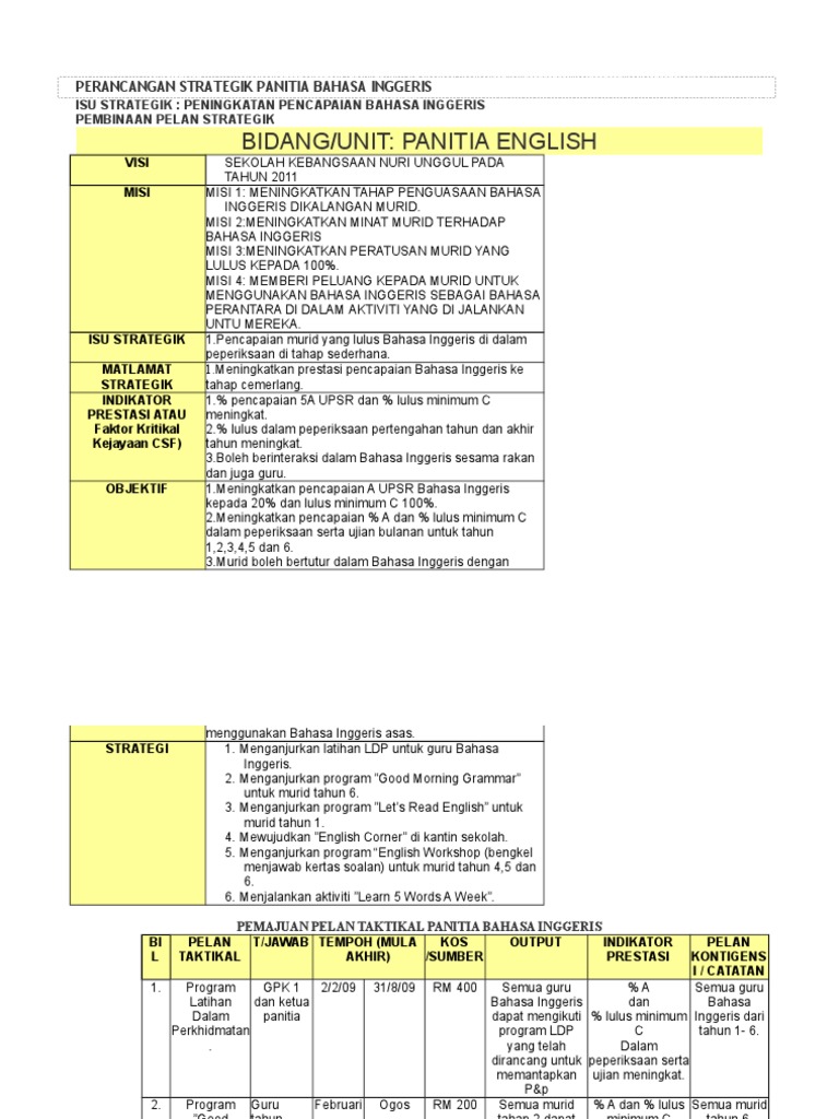 Doc Perancangan Strategik Panitia Bahasa Inggeris Wong Meiling Academia Edu