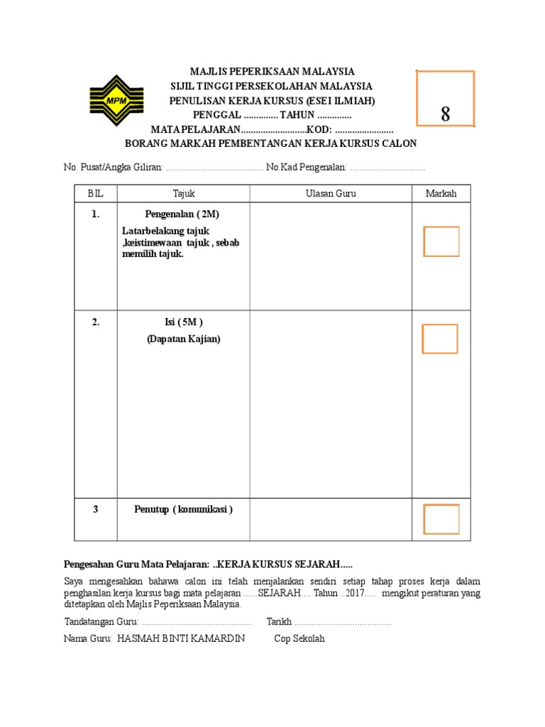 Pembentangan Sejarah Stpm Kerja Kursus