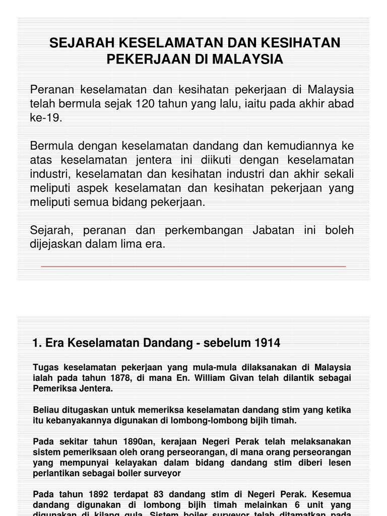 Sejaran Dan Perkembangan Akta Keselamatan Dan Kesihatan Pekerjaan