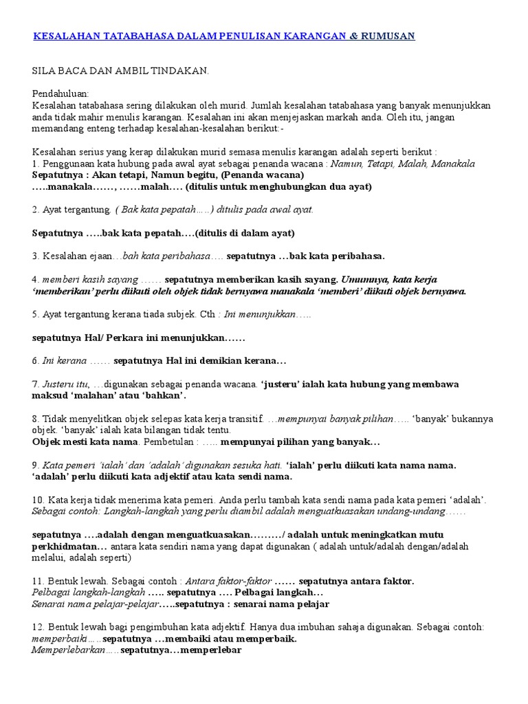 Kesalahan Tatabahasa Dalam Penulisan Karangan