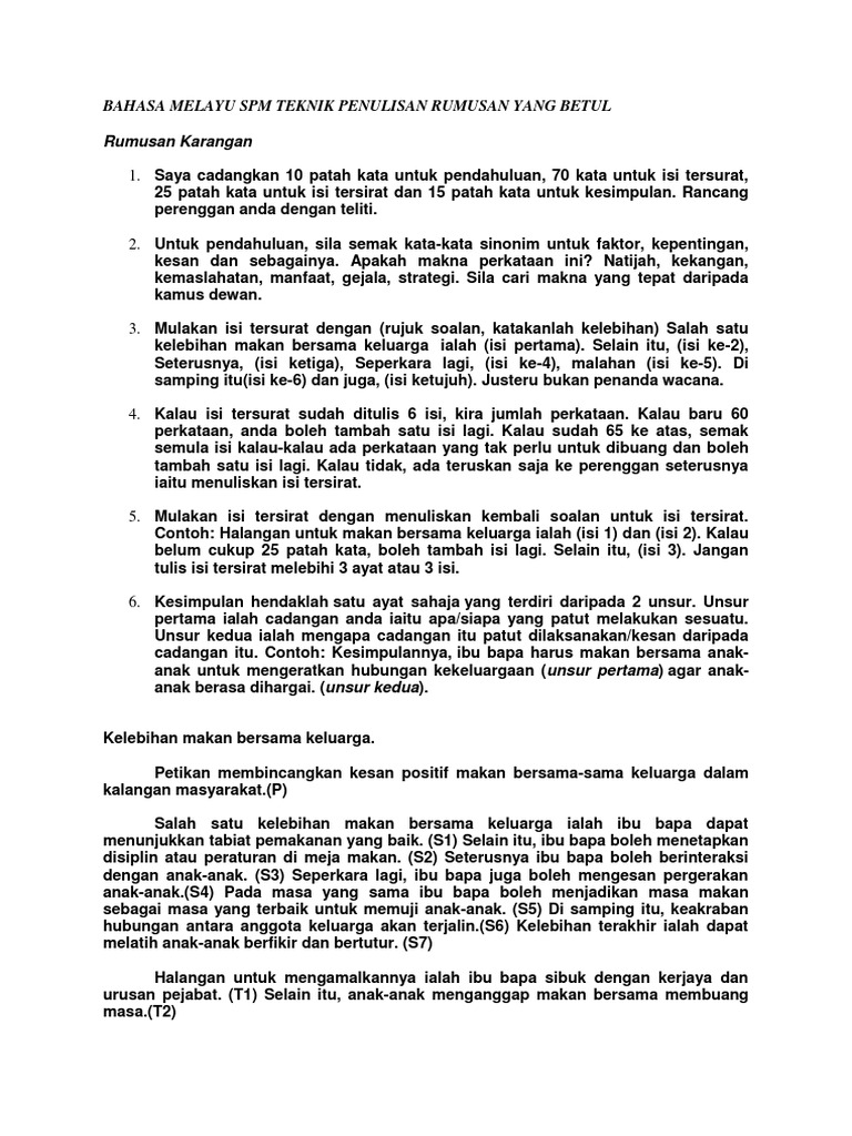 Bahasa Melayu Spm Teknik Penulisan Rumusan Yang Betul