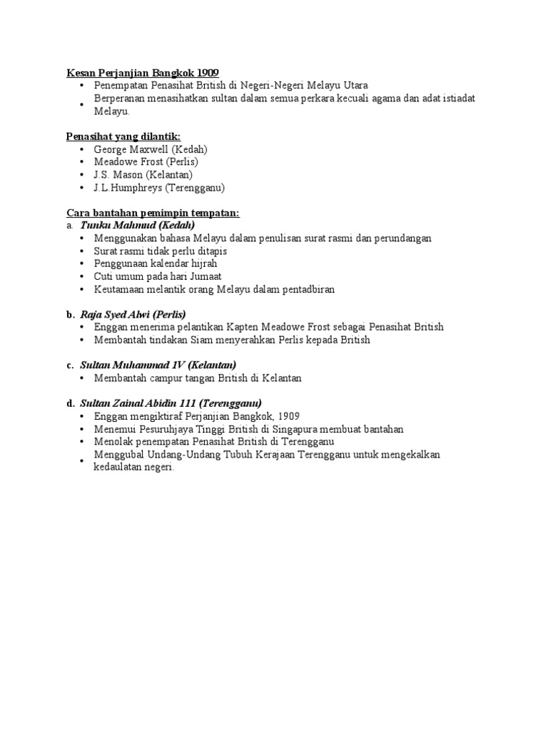 Perjanjian Sulit 1897 Perjanjian Perisytiharan British Siam 1902 Perjanjian Bangkok 1909 Menggunakan Bahasa Inggeris Dlm Penulisan Surat