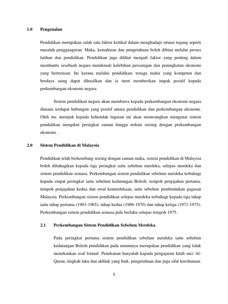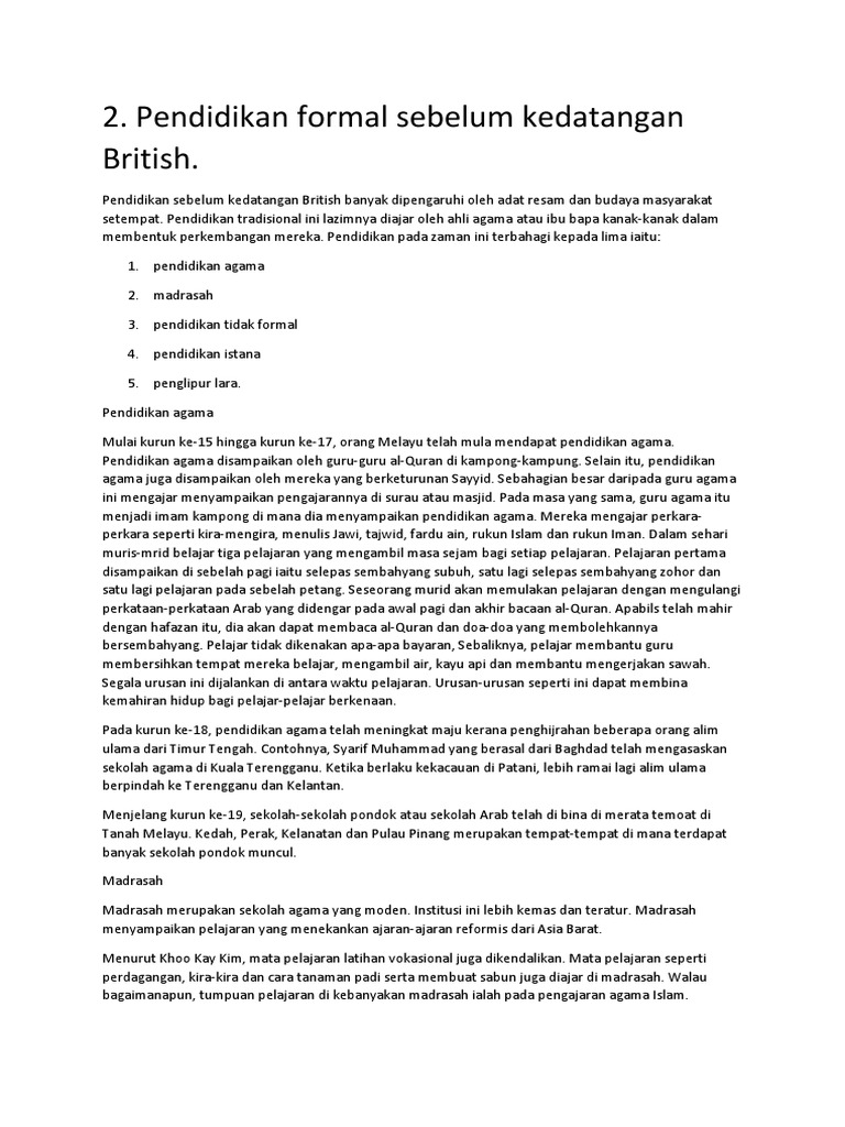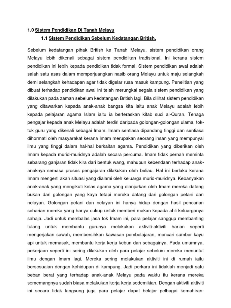 1 Sistem Pendidikan Di Tanah Melayu Sebelum Kedatangan British