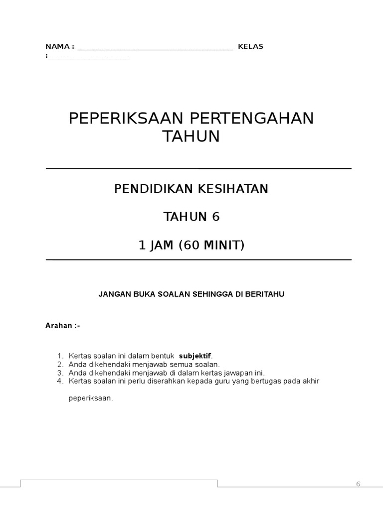 Peperiksaan Pertengahan Tahun Pendidikan Kesihatan Pk Tahun 4