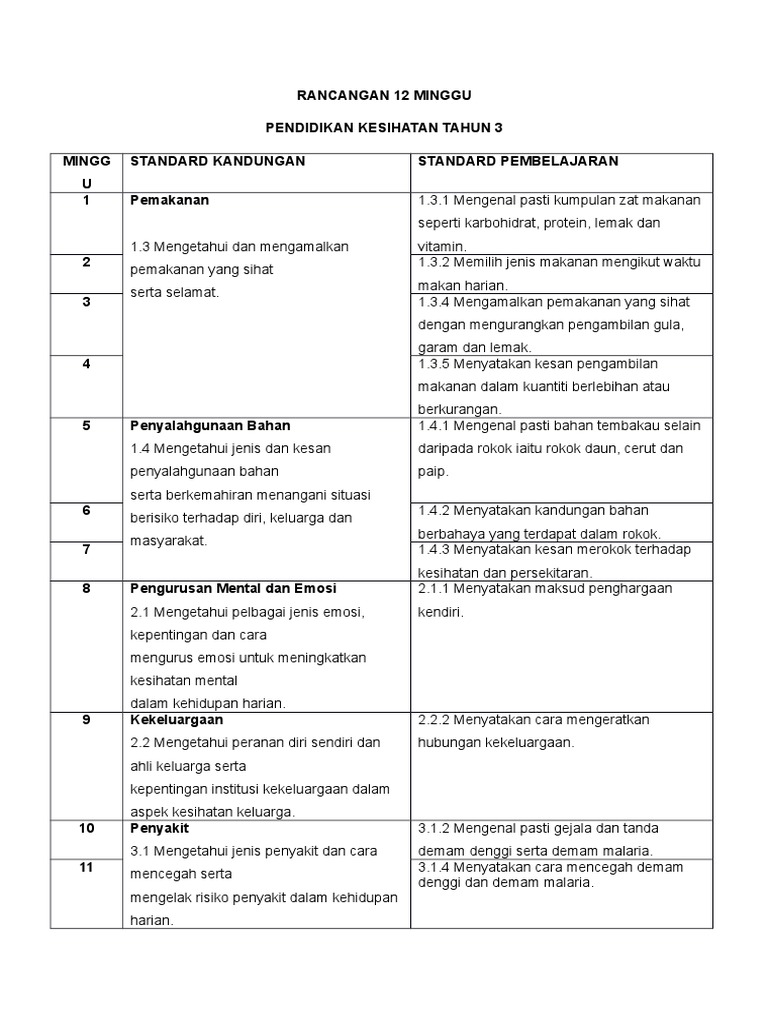 Dokumen Standard Pendidikan Kesihatan Tahun 3